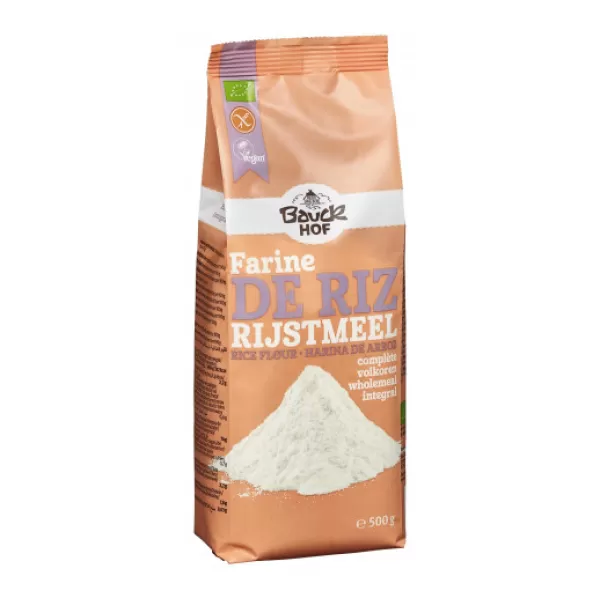 Bauck Hof bio gluténmentes rizsliszt teljes kiőrlésű. Ellenőrzött biogazdálkodásból származó rizsliszt, mely a Bauck Hof cég gluténmentes termékeket előállító malmában készült, így gluténérzékenyek is nyugodtan fogyaszthatják.