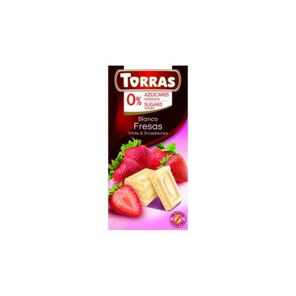 A Torras epres fehércsokoládé hozzáadott cukor nélkül, édesítőszerrel készült.